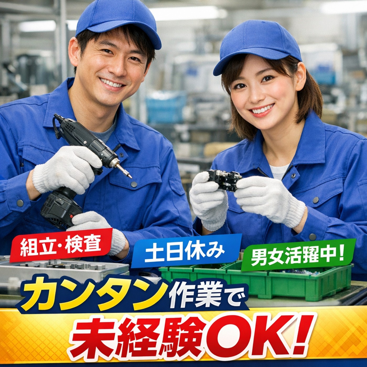 | お仕事内容 | 電動ドライバー等を使用した組立 完成品のかんたんな検査業務が主になります。 その他、ピッキングなどもあります。 |